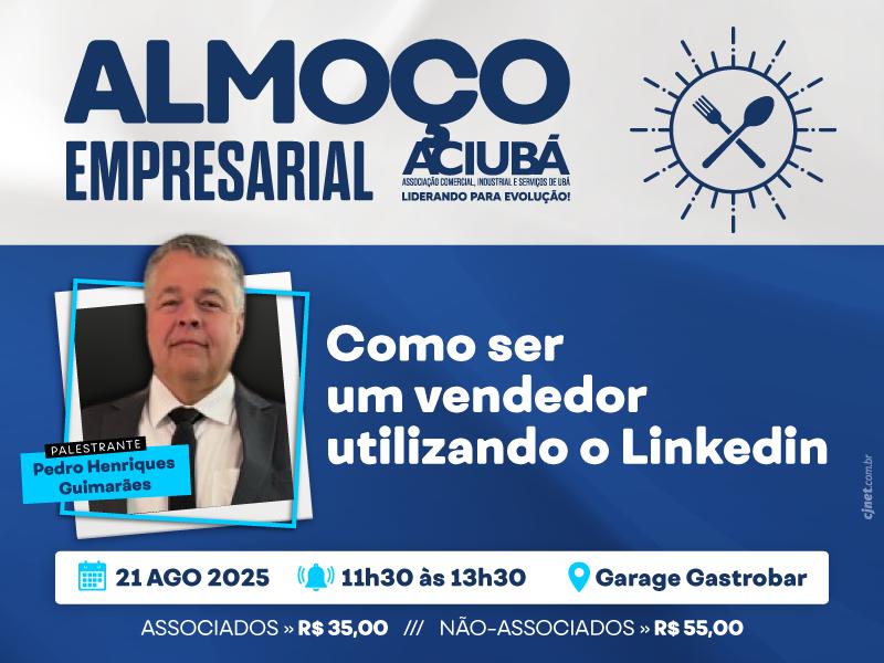 Participe do nosso próximo encontro com a palestra “Como ser um vendedor utilizando o LinkedIn”, ministrada por Pedro Henriques Guimarães. Uma oportunidade para adquirir conhecimento estratégico e ampliar sua rede de contatos.